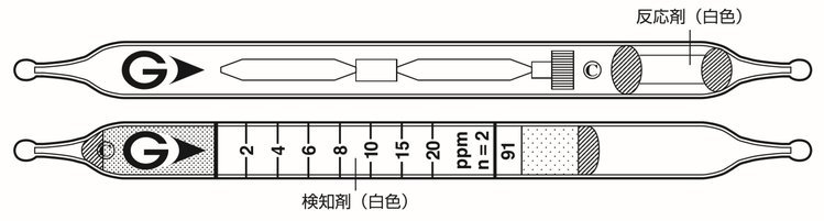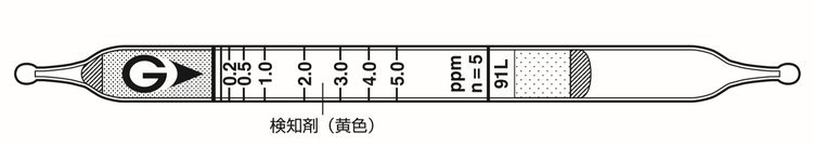 檢測線:0.03ppm(抽氣5次)顏色變化:黃褐色→粉色