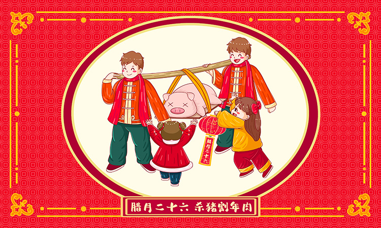 關于臘月二十六,民間還流傳著“臘月二十六割年肉"的說法:說“臘月二十六,殺豬割肉"或“二十六,割刀頭",說的是這一天主要籌備過年的肉食。故此稱為“年肉"。