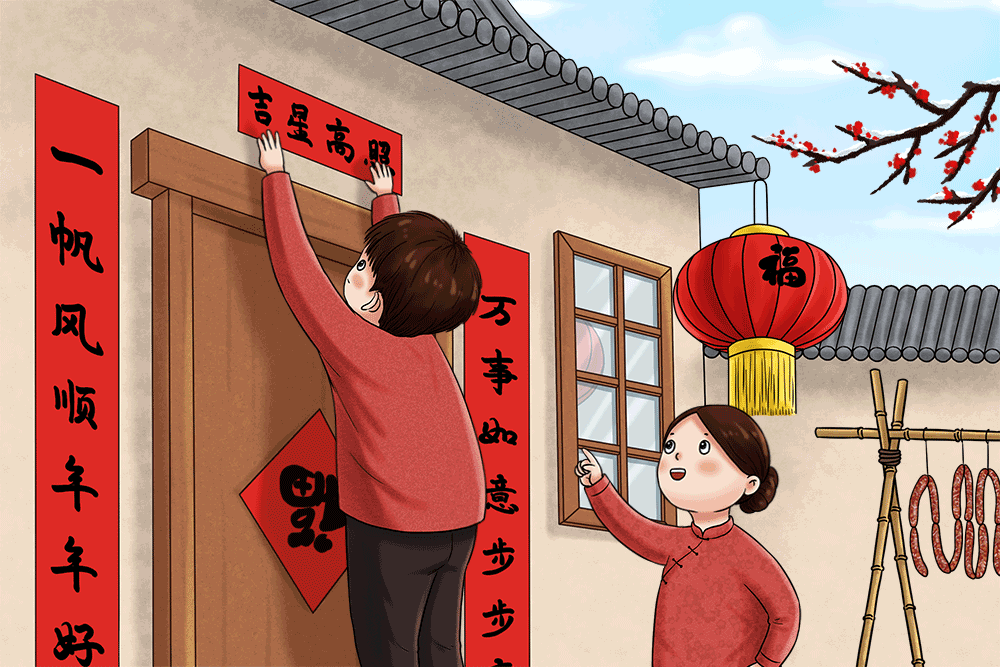 貼年紅,即是貼春聯、門神、年畫、福字、橫批、窗花等的統稱,因這些是過年時貼的紅色喜慶元素,所以統稱為“貼年紅"。貼年紅是中華傳統過年習俗,它反映了人民大眾的風俗和信仰,增添喜慶的節日氣氛,并寄予著人們對新年新生活的美好期盼。